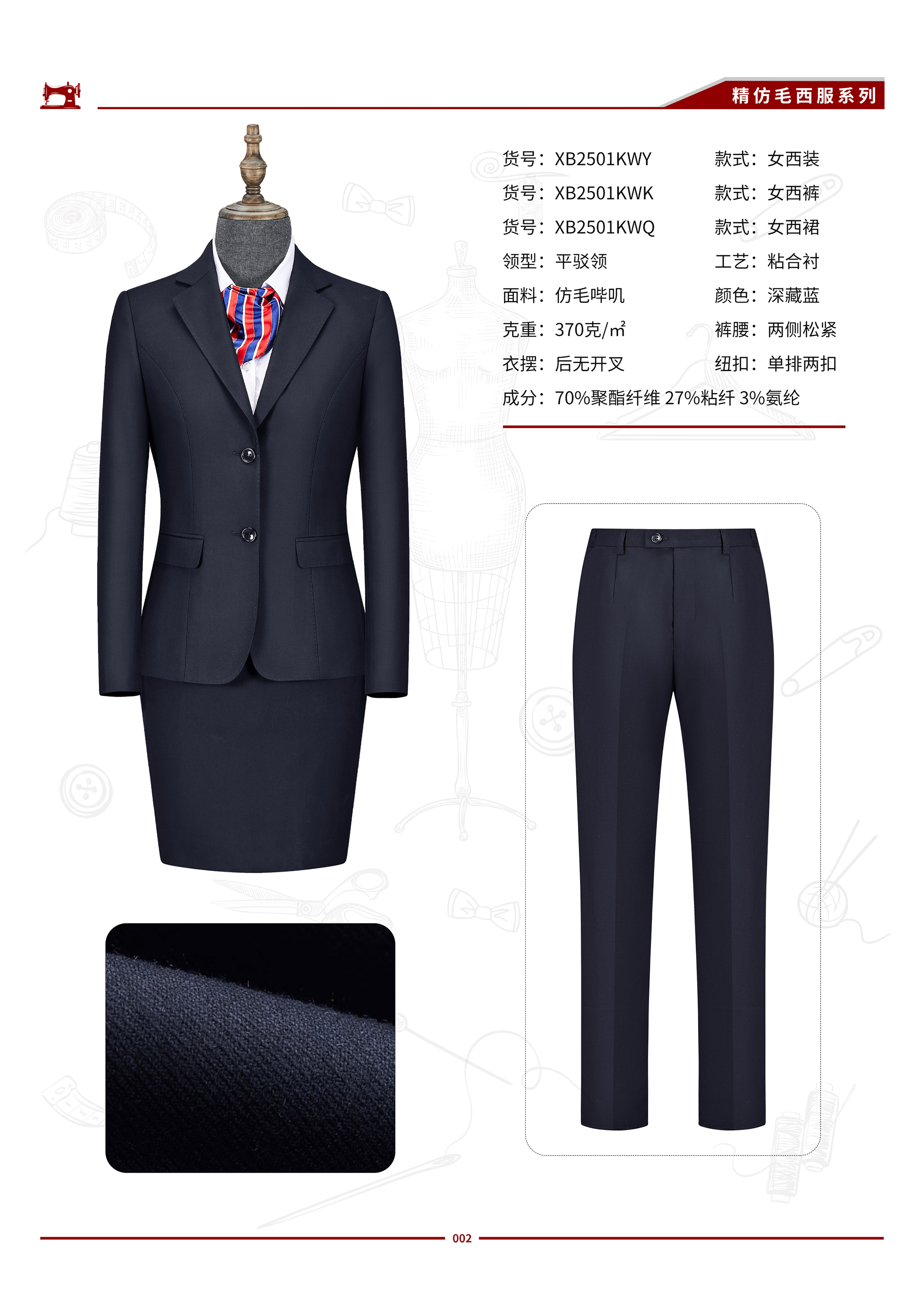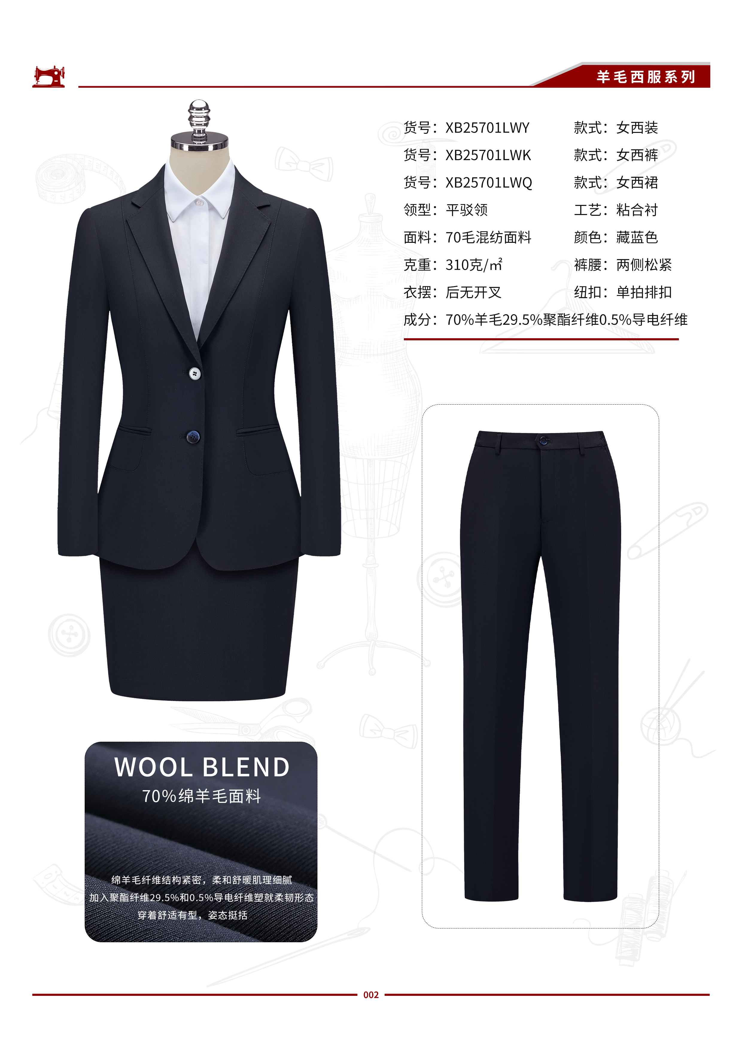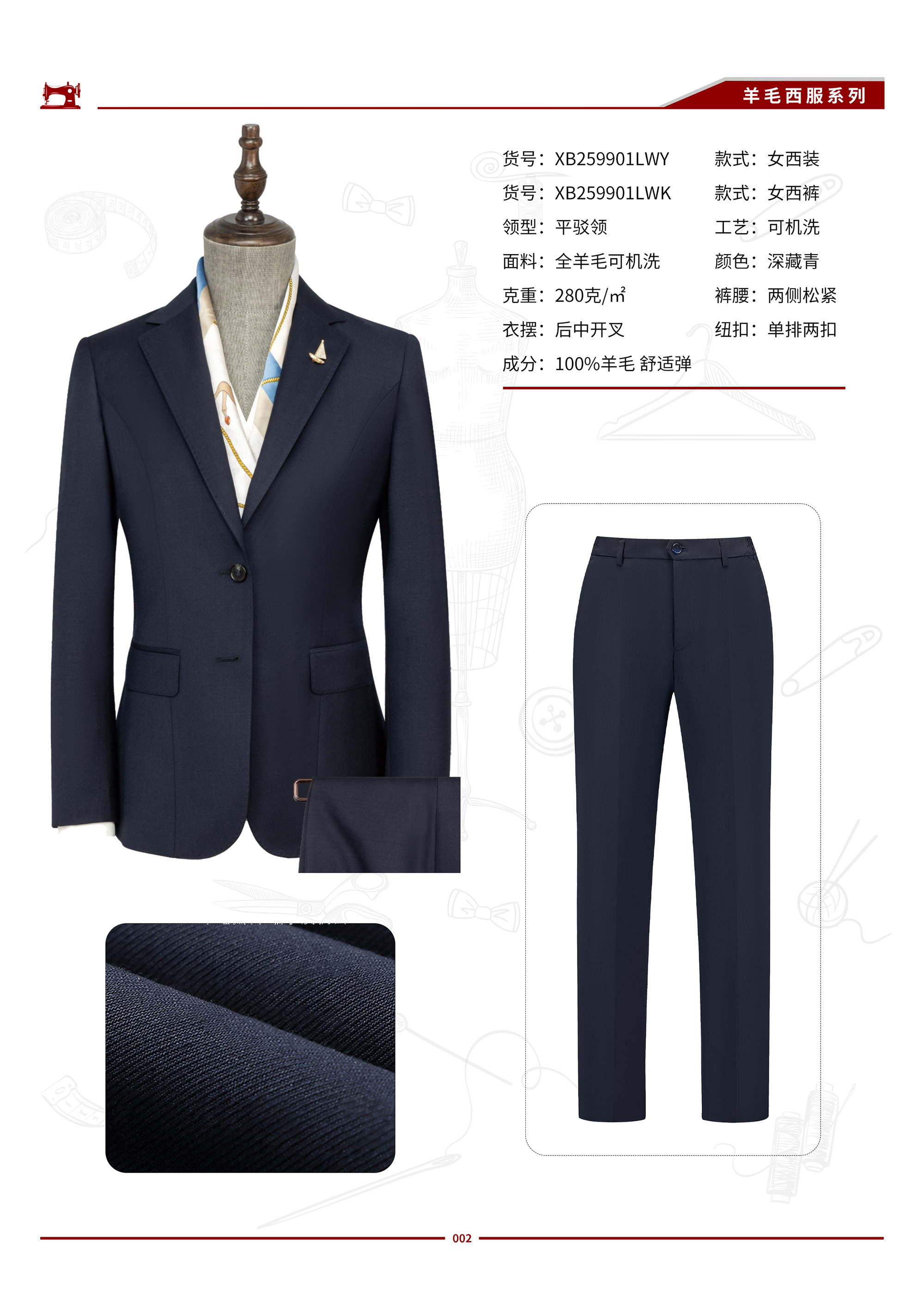 XB259901LW 女士100%羊毛半麻衬可机洗西服