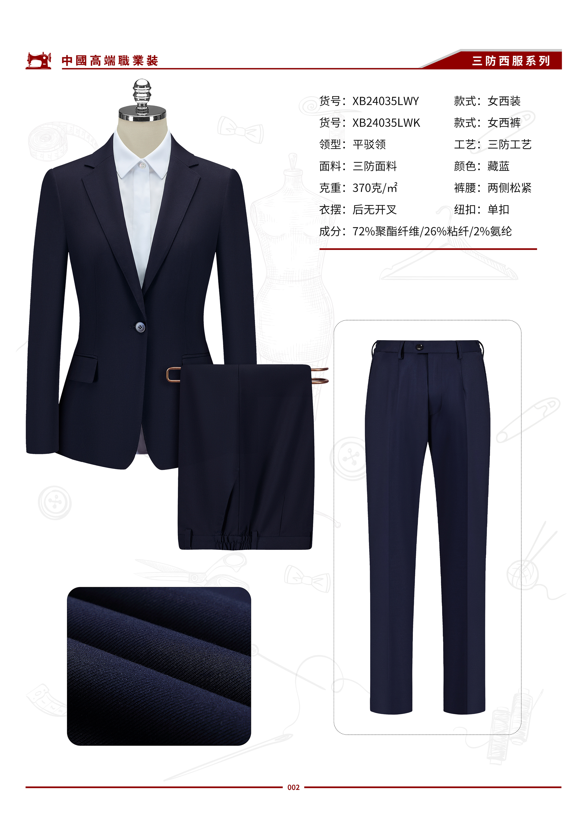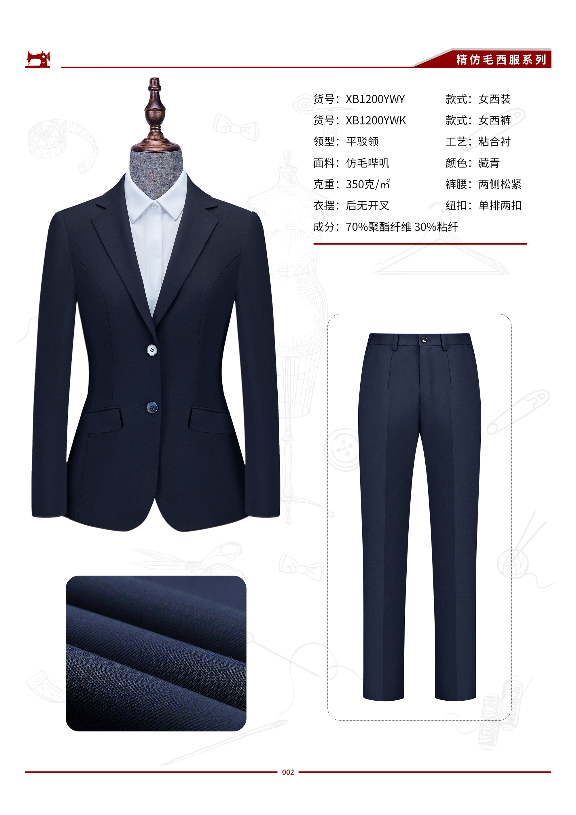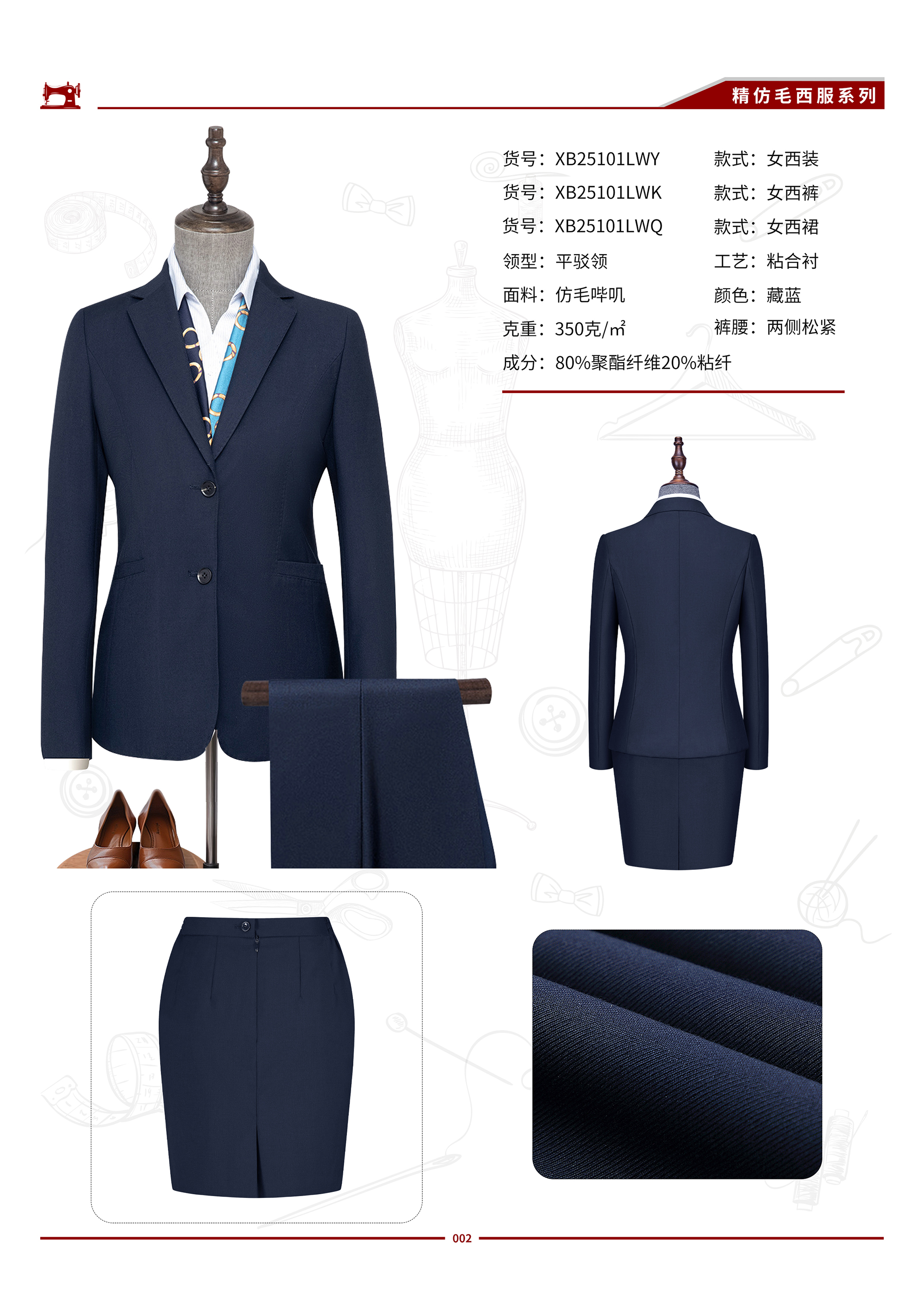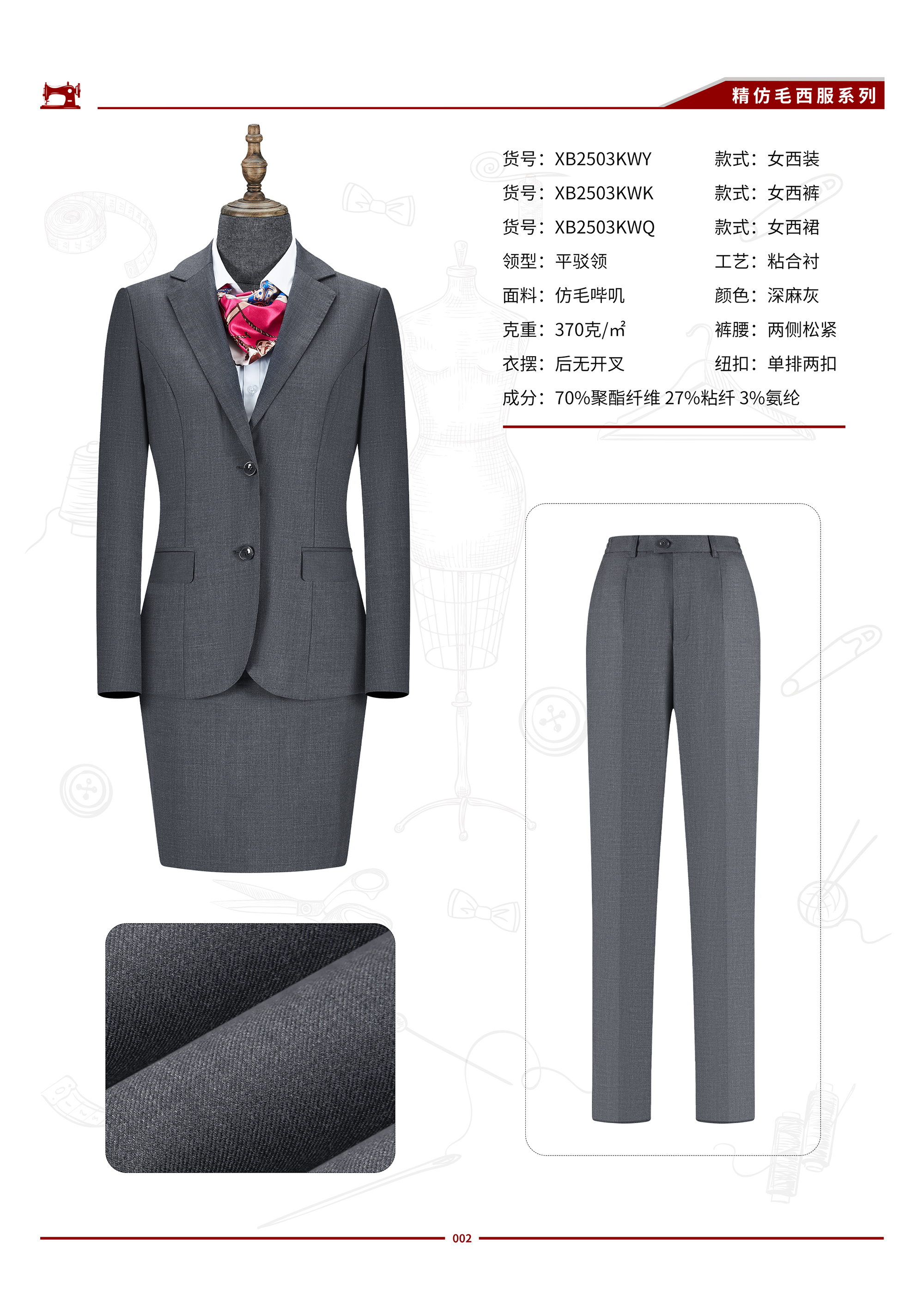 XB259901LW 女士100%羊毛半麻衬可机洗西服