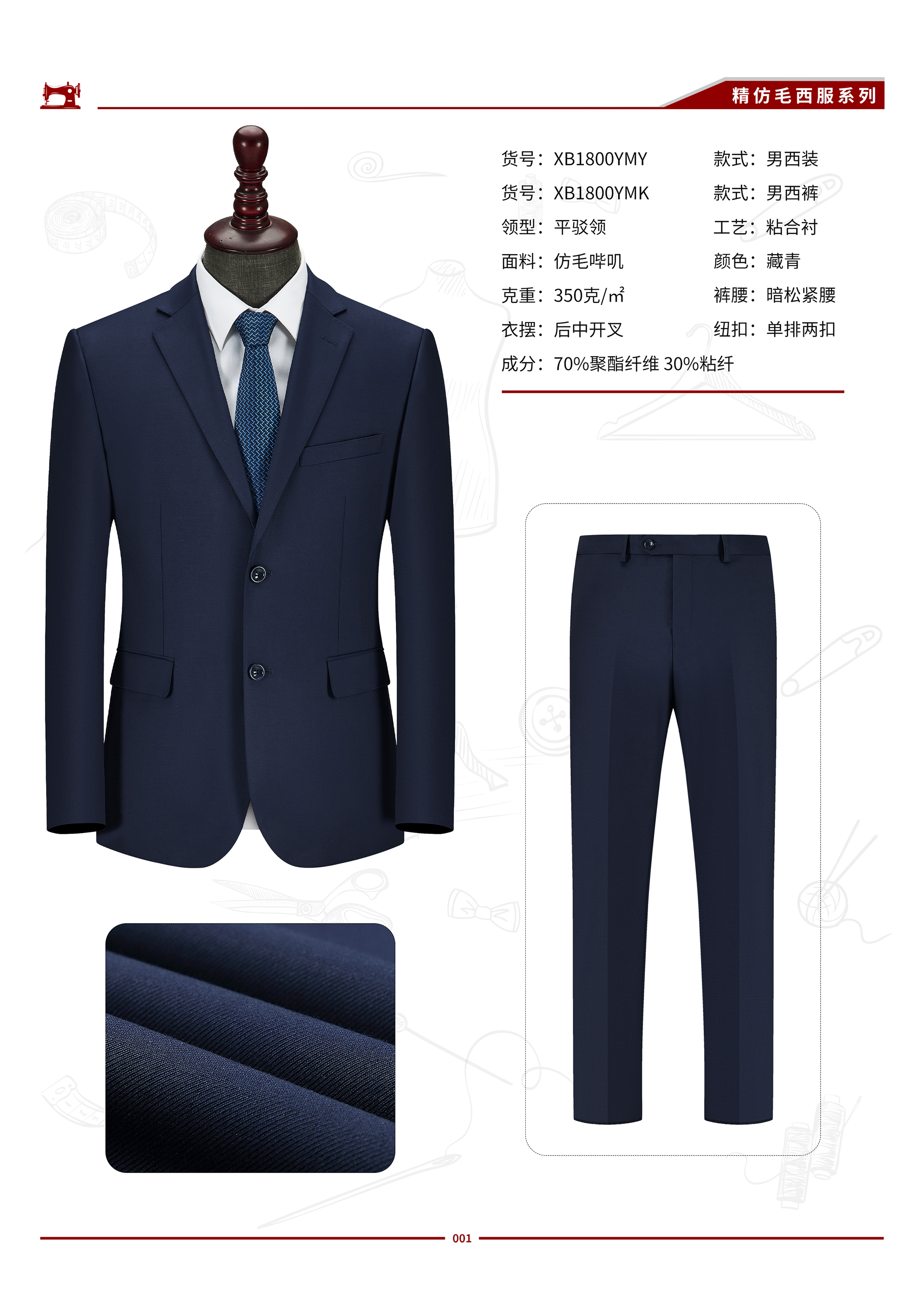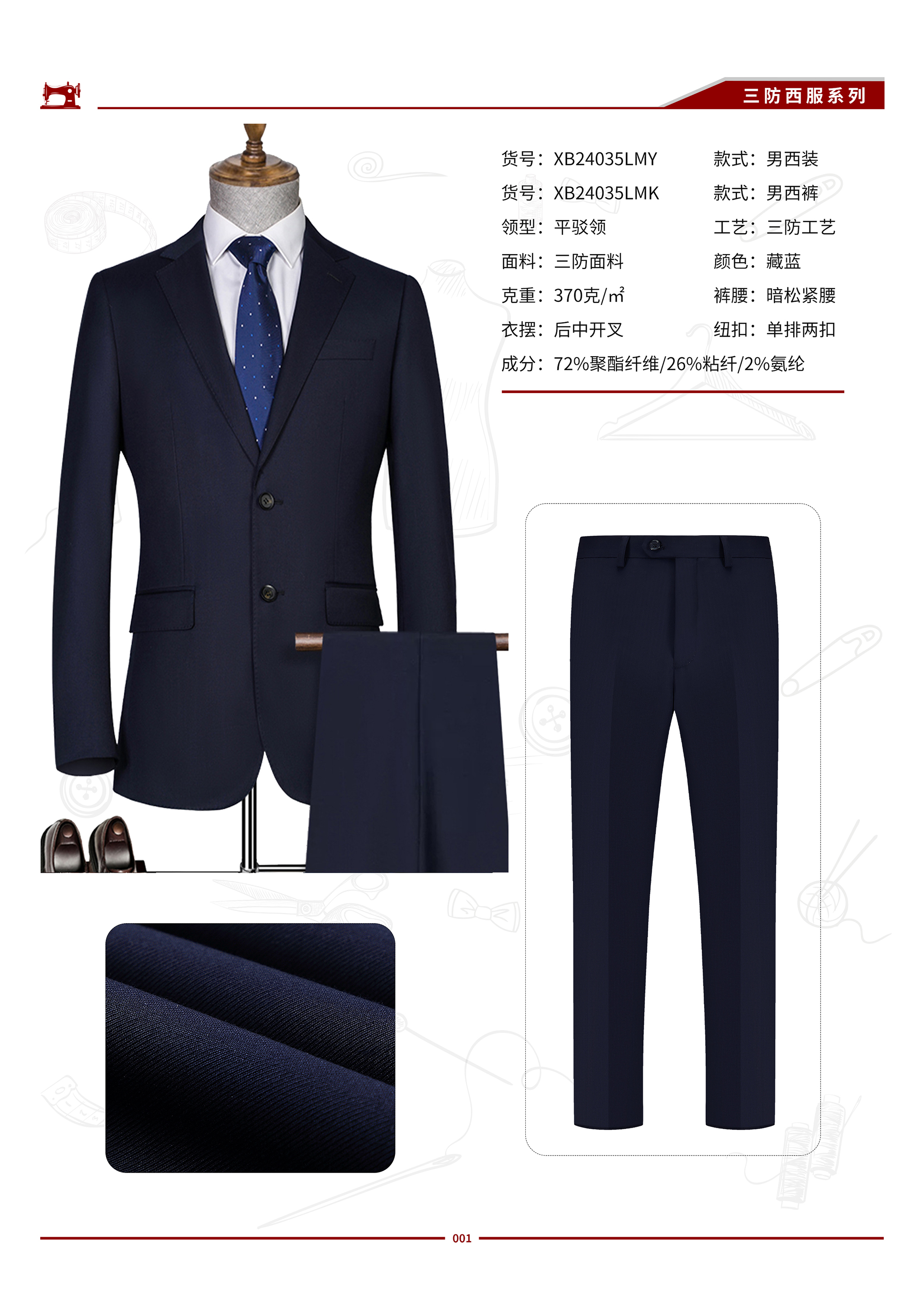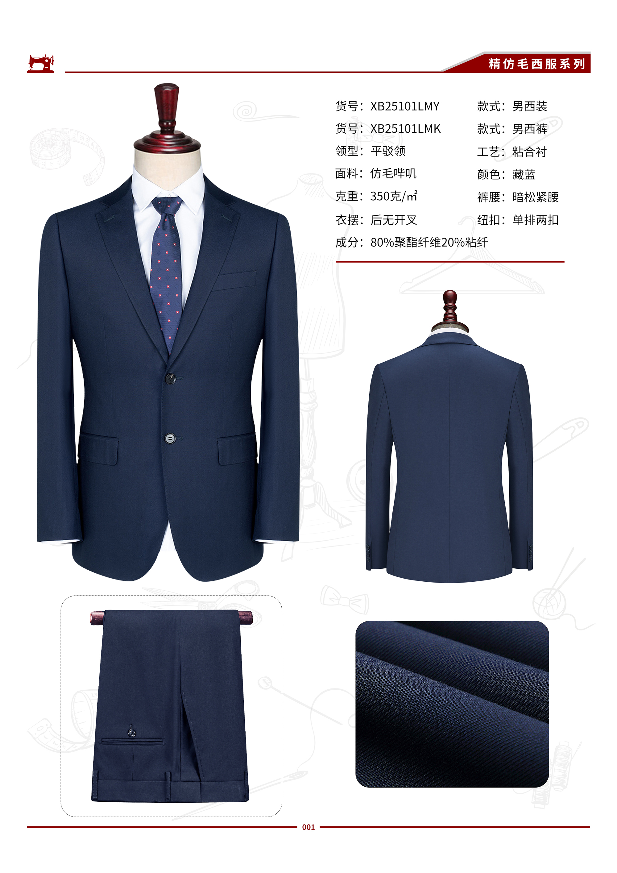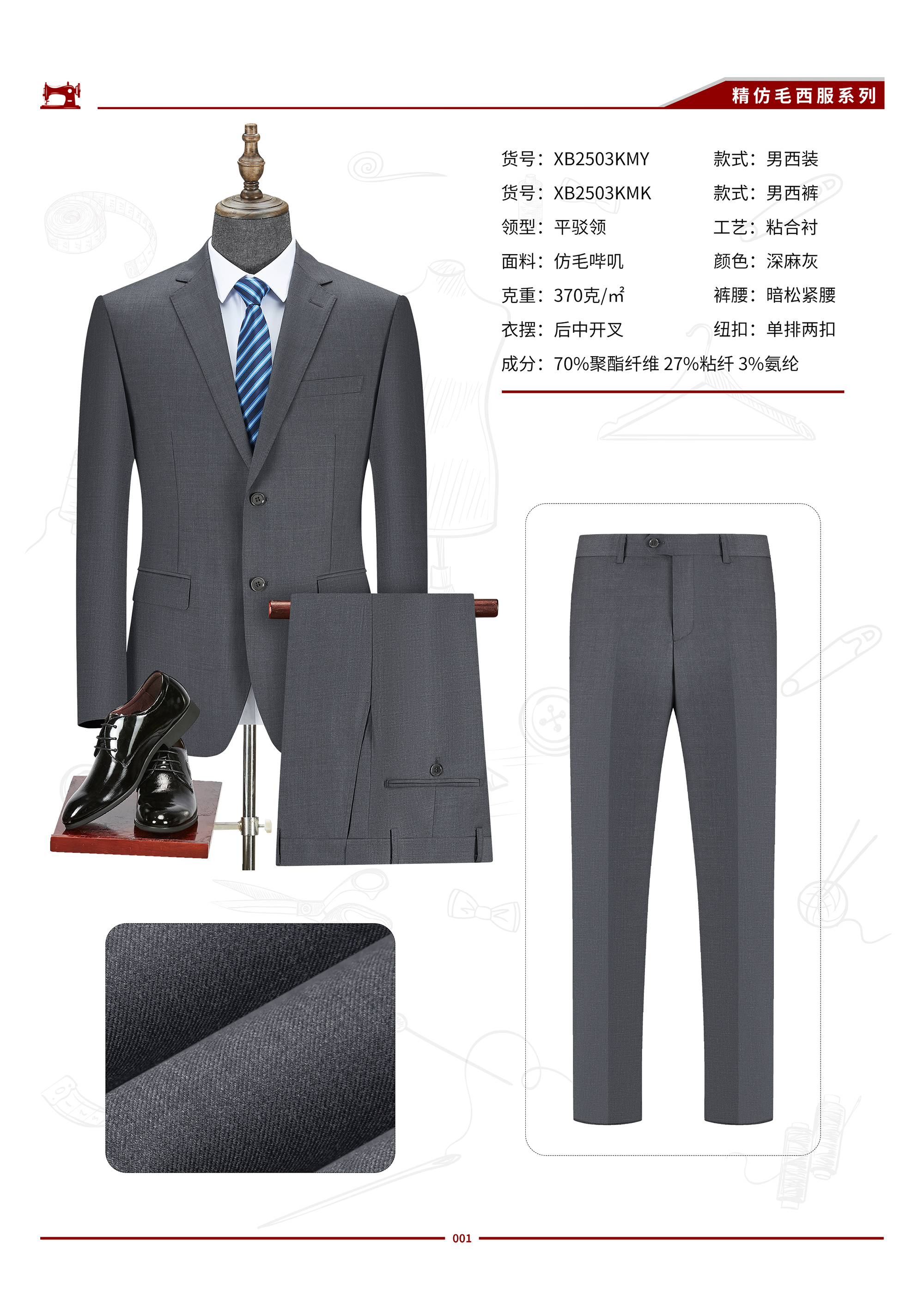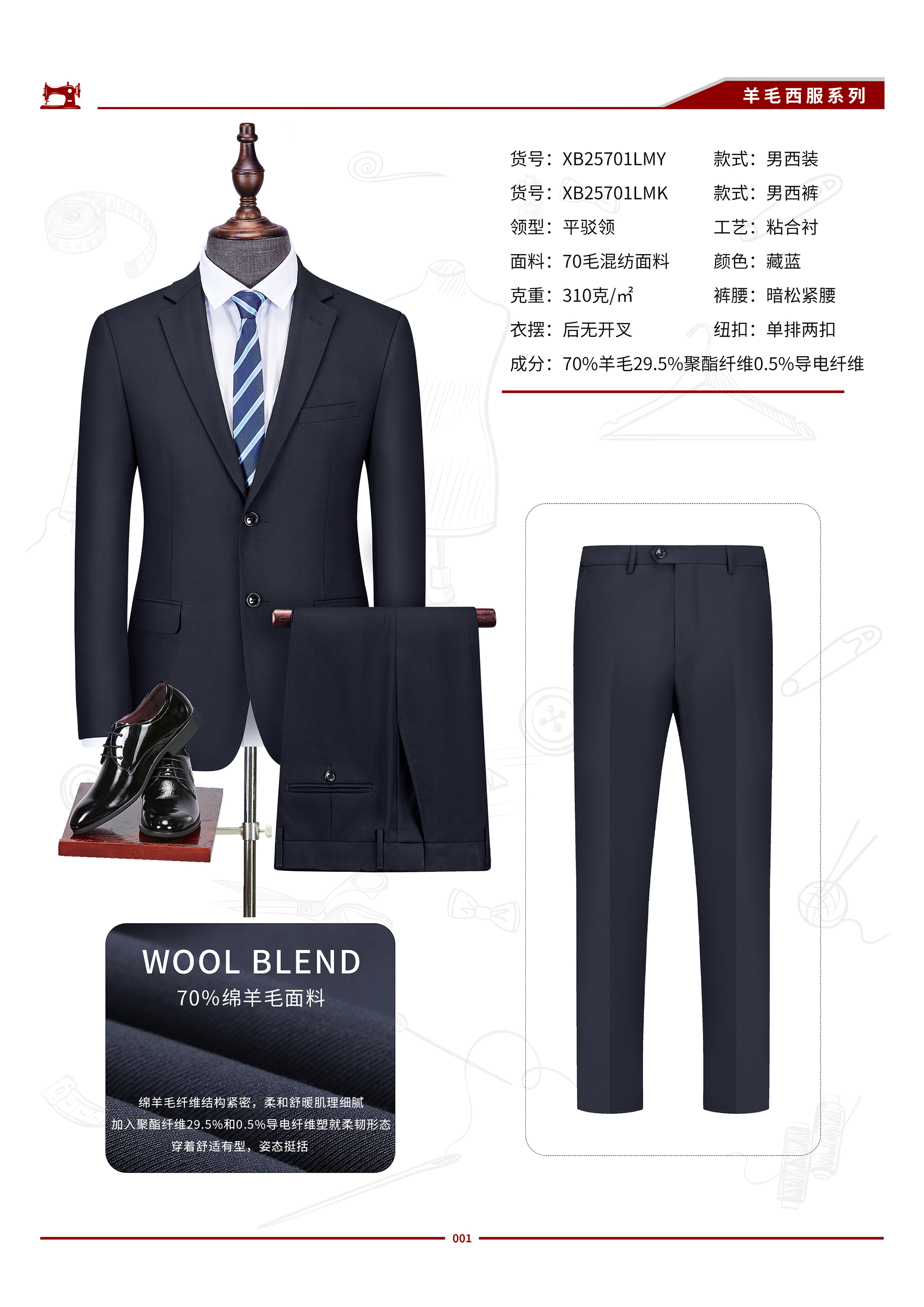 XB259901LM 男士100%羊毛半麻衬可机洗西服