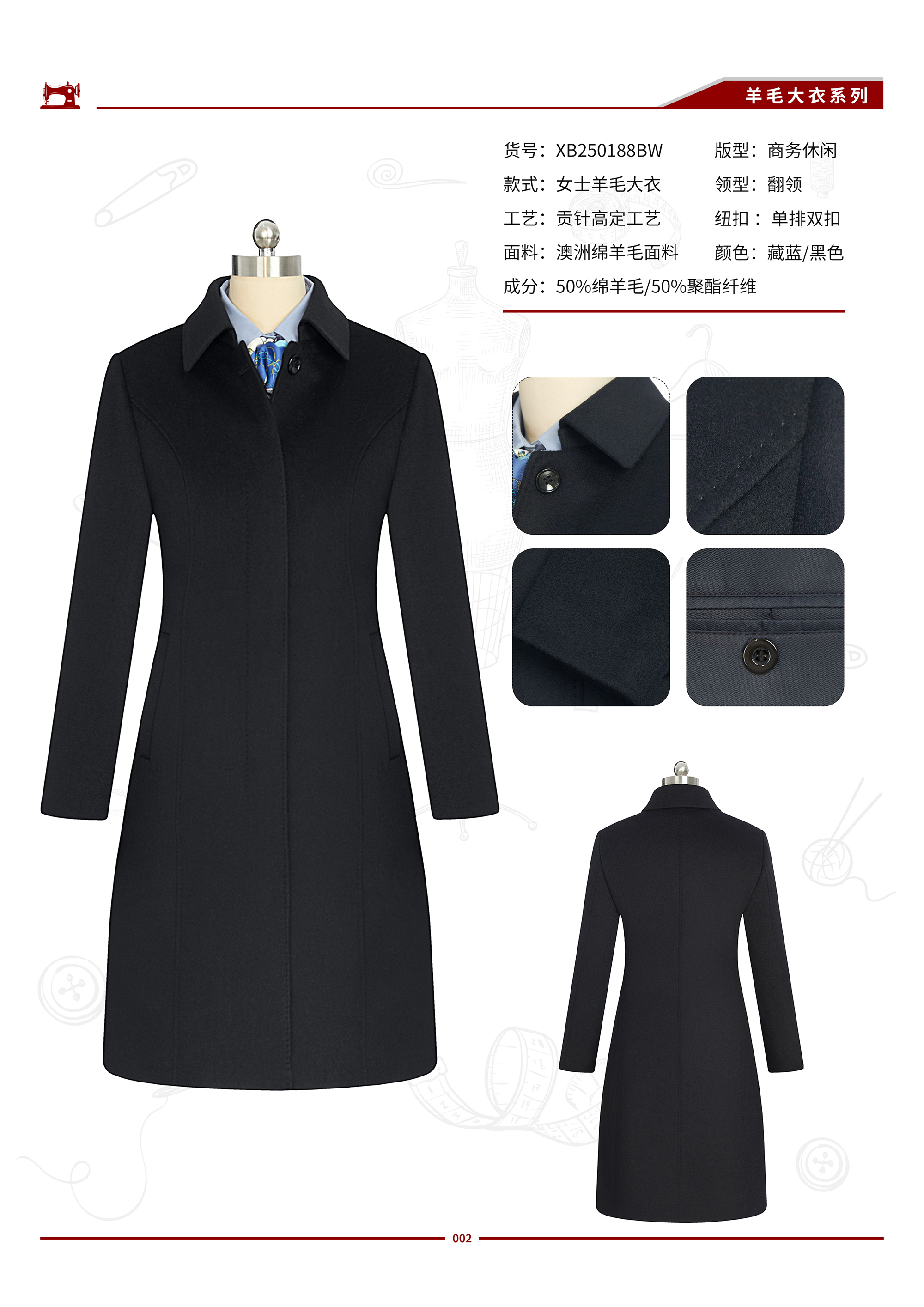 XB25Y0199BW 女士50%羊毛暗扣大衣