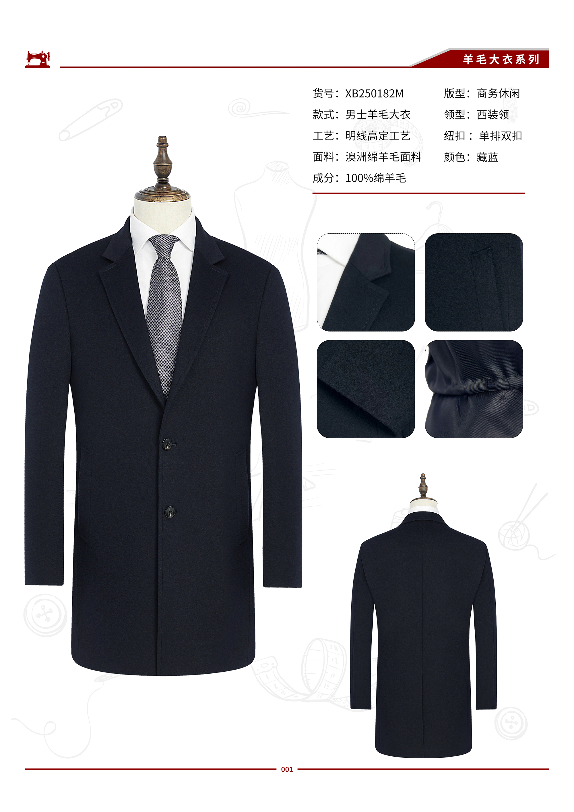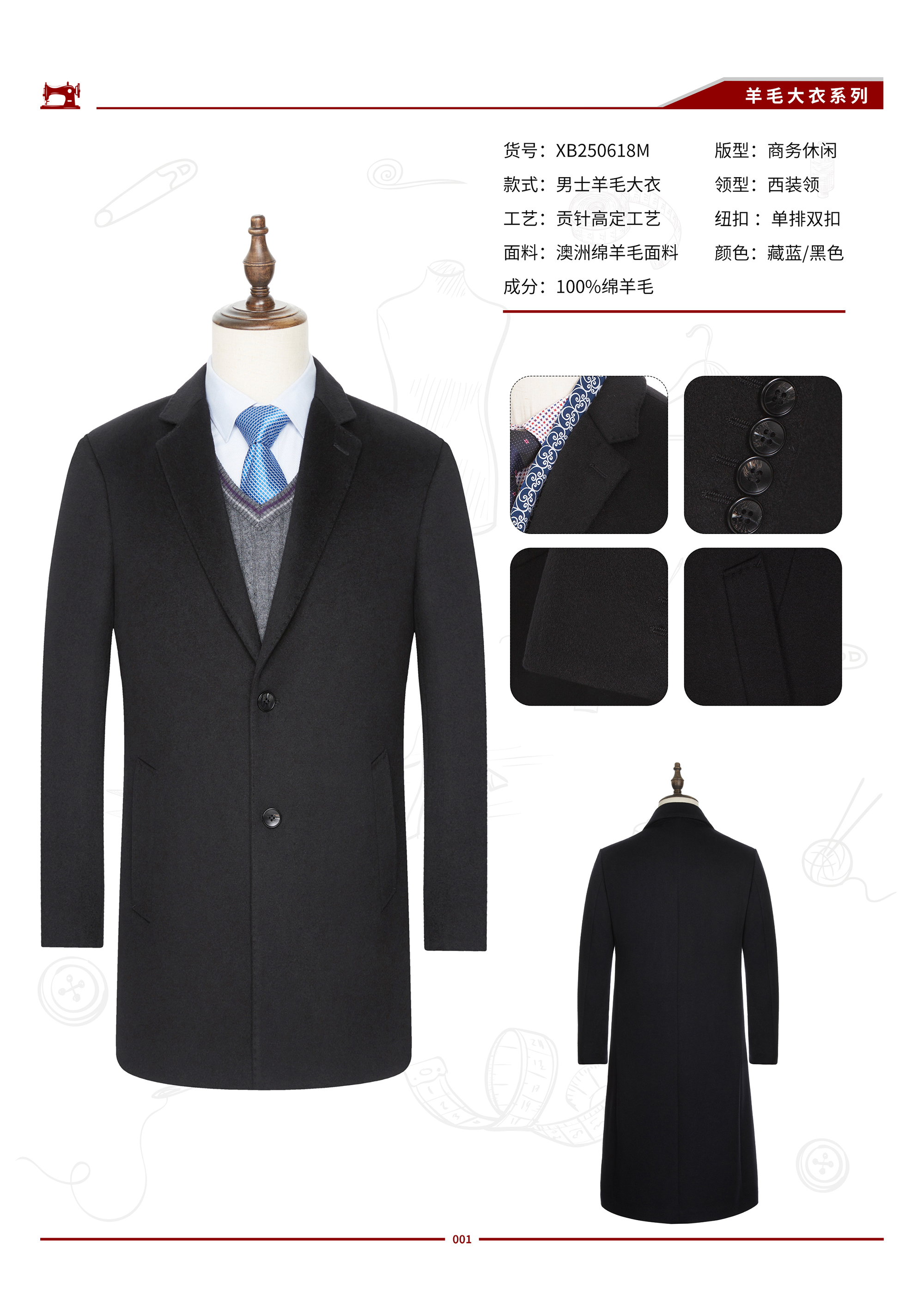 XB25Y0188BM 男士50%羊毛暗扣大衣