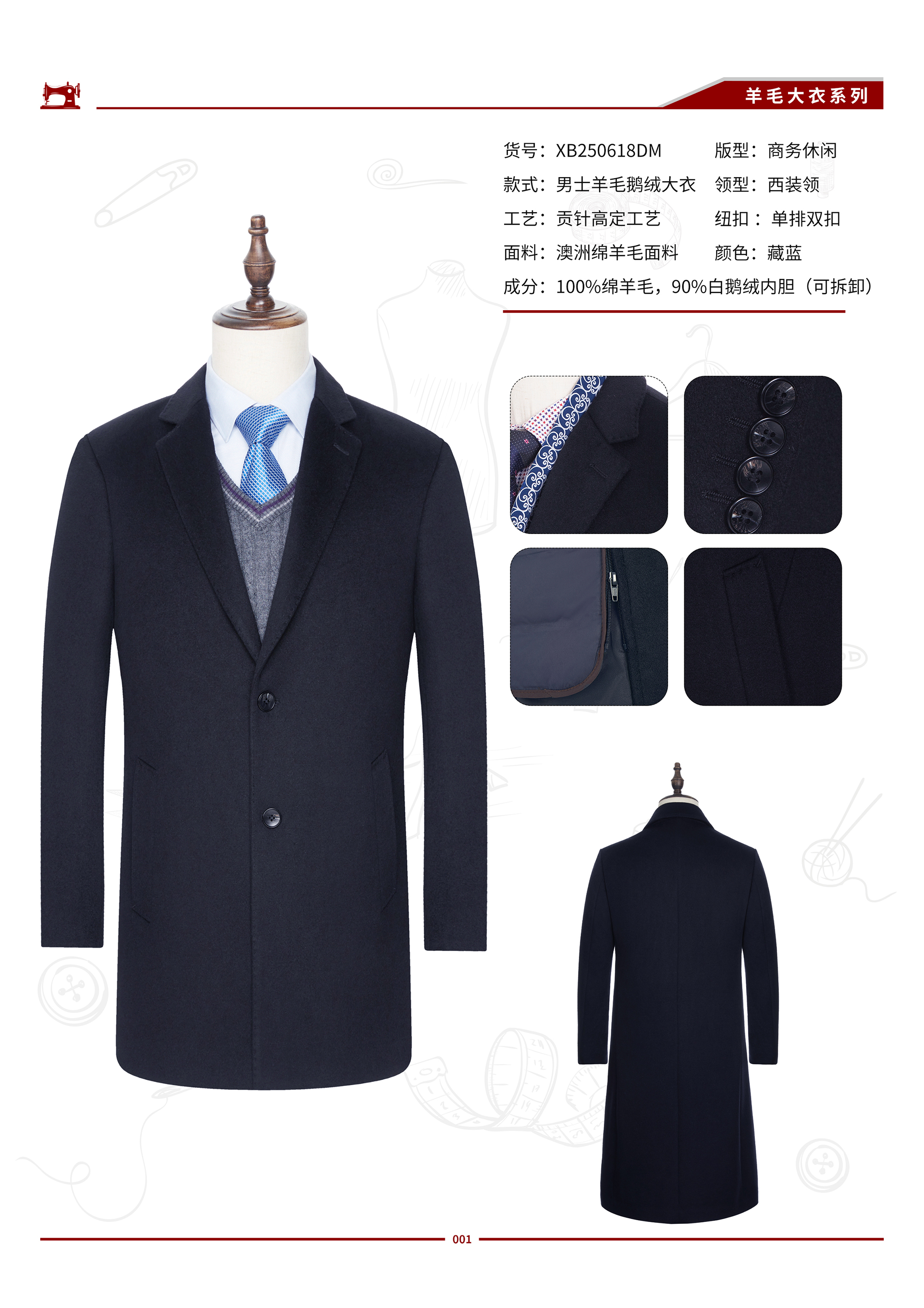 XB250618DM 男士100%羊毛配90%白鹅绒大衣