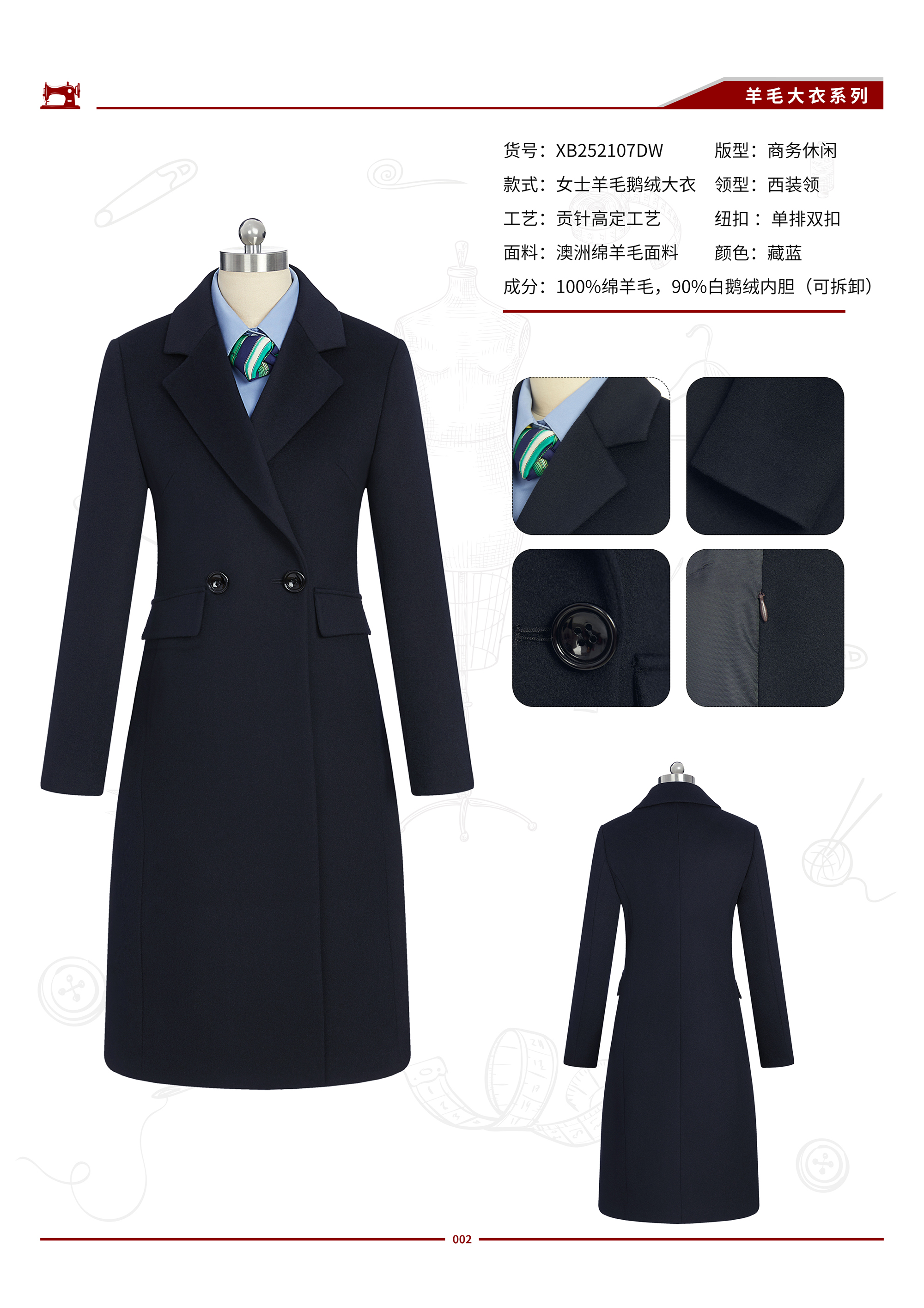XB2502107DW 女士100%羊毛配90%白鹅绒大衣