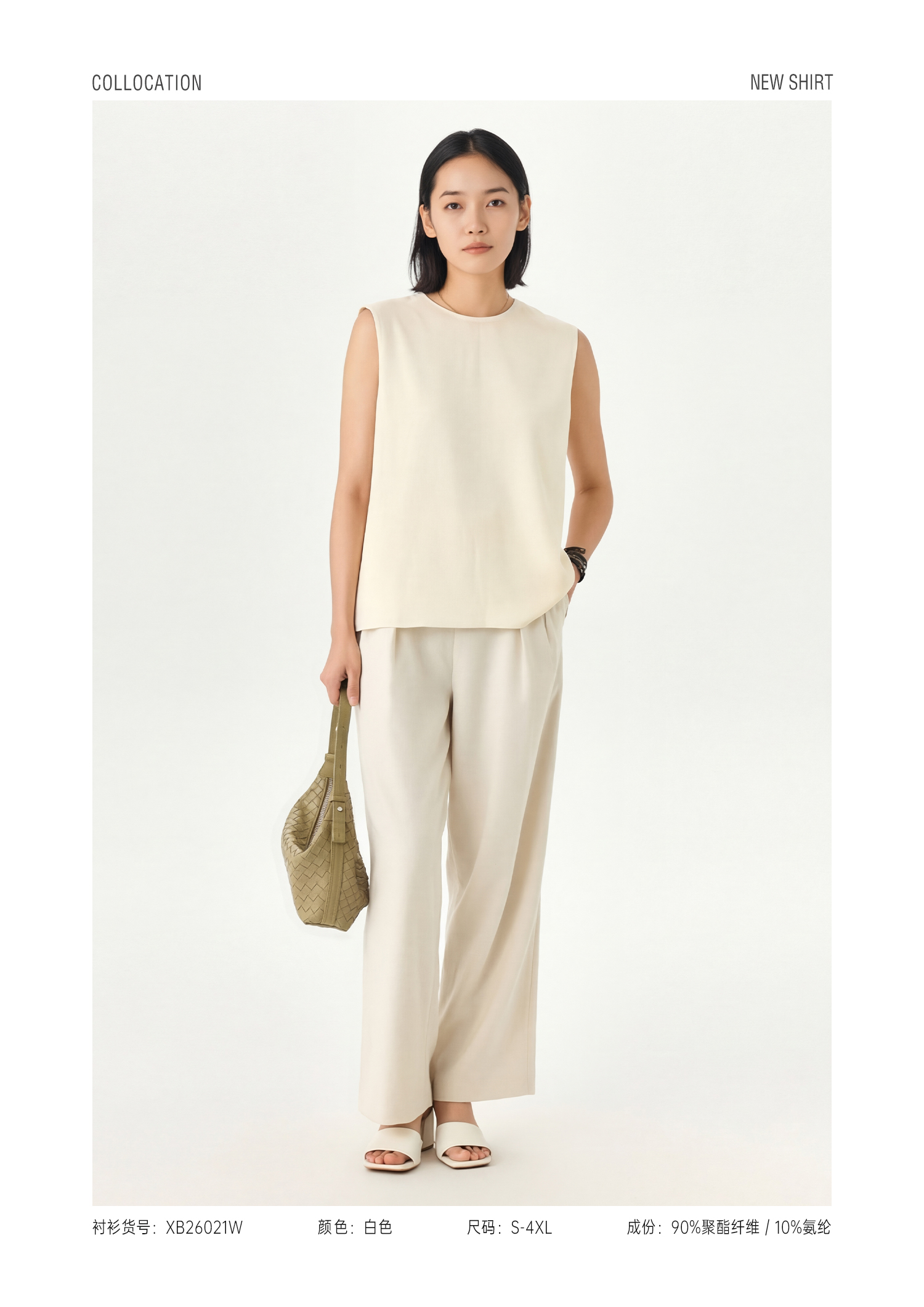 XB26021W 女士弹力宽松无袖圆领通勤衫