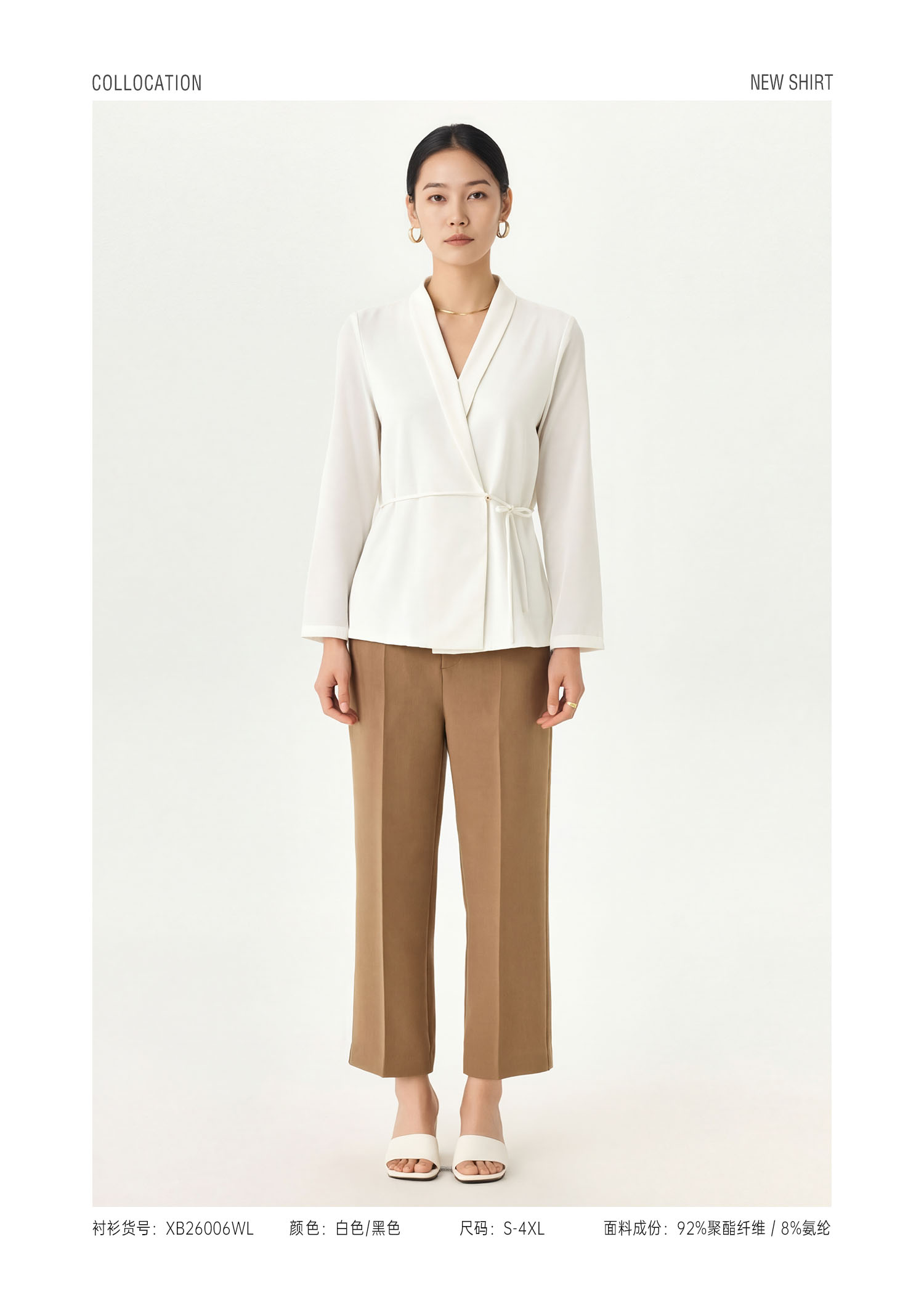 XB260013WL 女士法式尖领飘带通勤衬衫