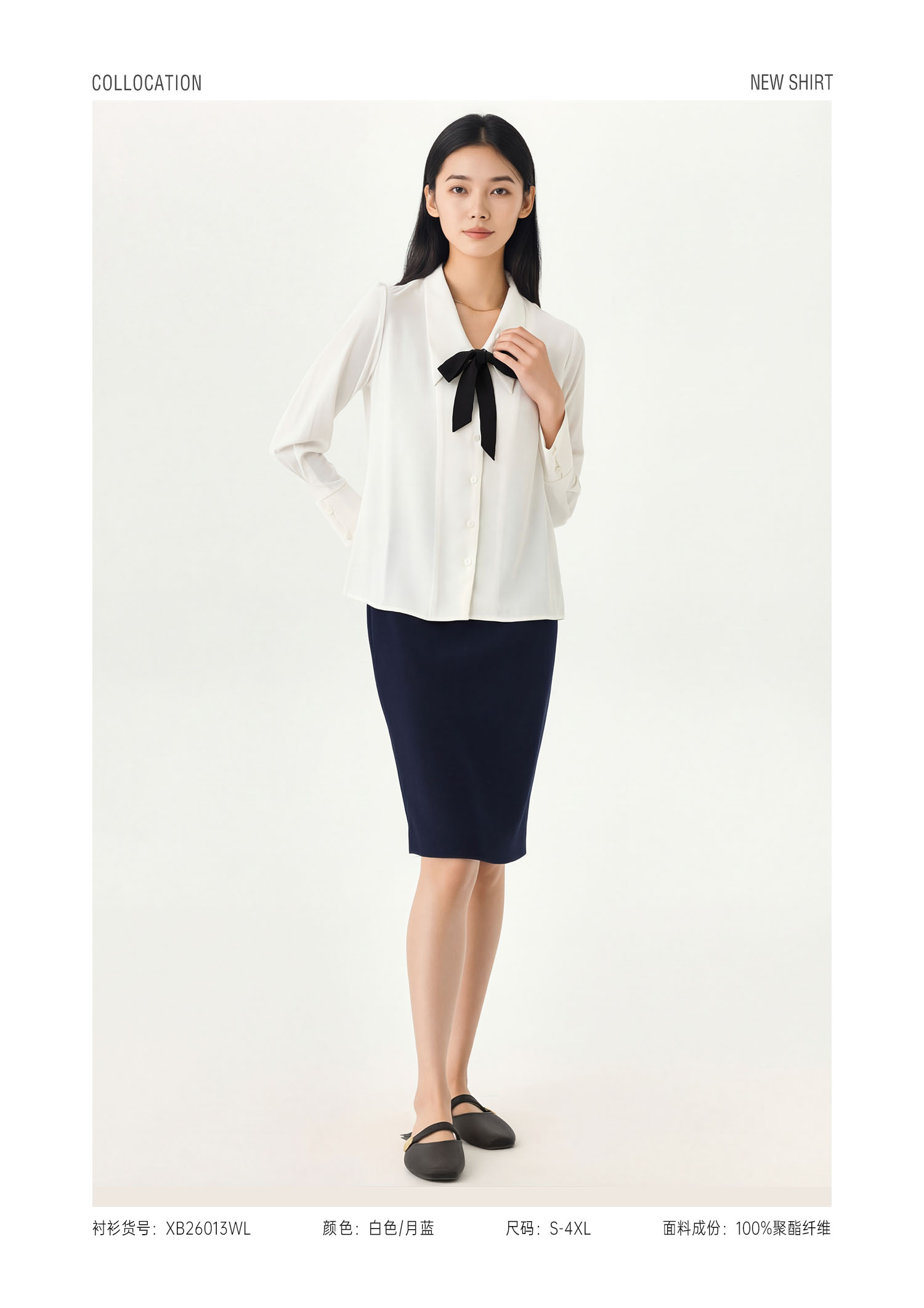 XB26006W 女士青果领系带通勤衬衫