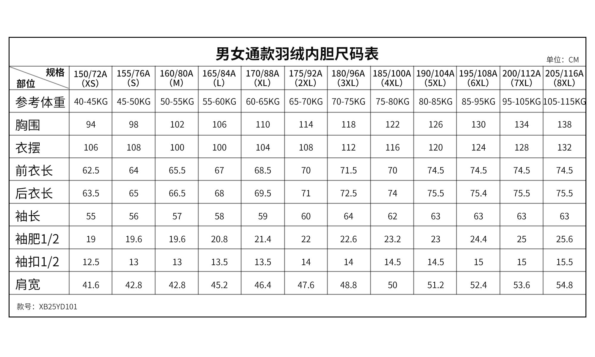 XB25CF1010 男女通款90%白鸭绒冲锋衣