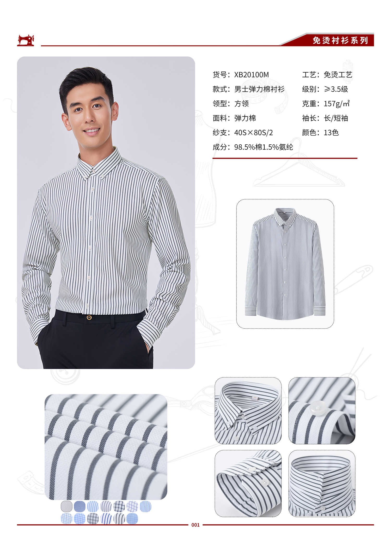 品名 XB20100M-男士80支弹力棉免烫衬衫