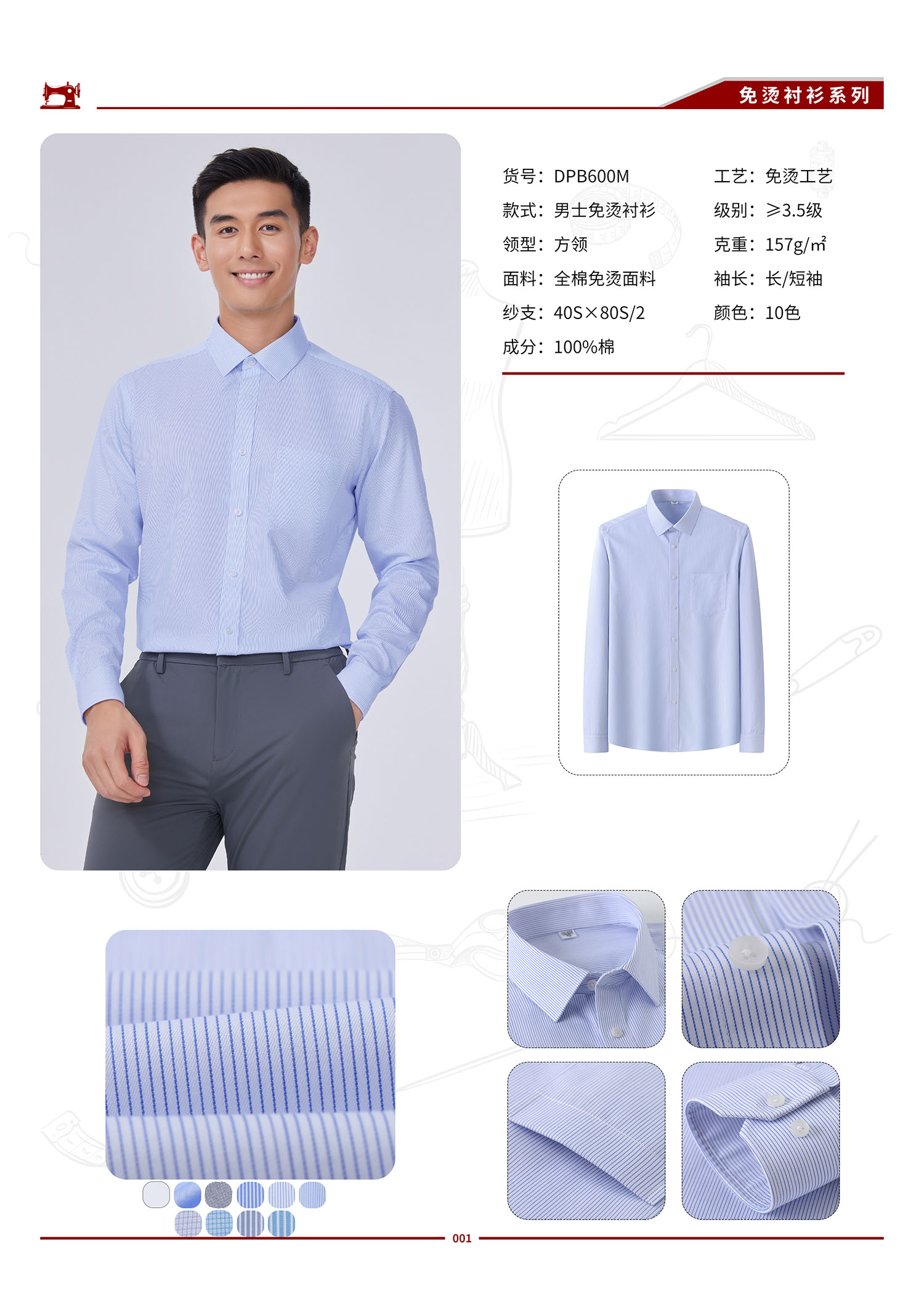 品名 DPB600M 男士80支纯棉口袋免烫衬衫
