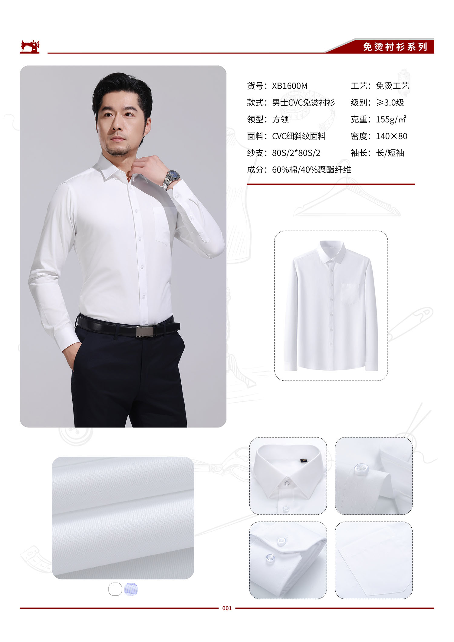 XB1600M 男士CVC 80支免烫易打理衬衫