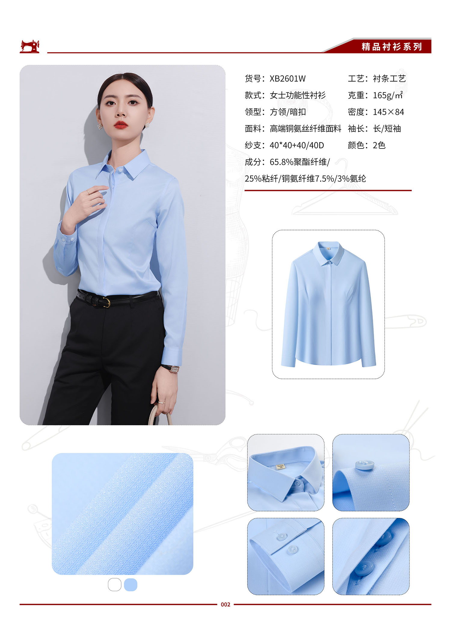 XB2601W 女士铜氨丝凉感控温透气衬衫
