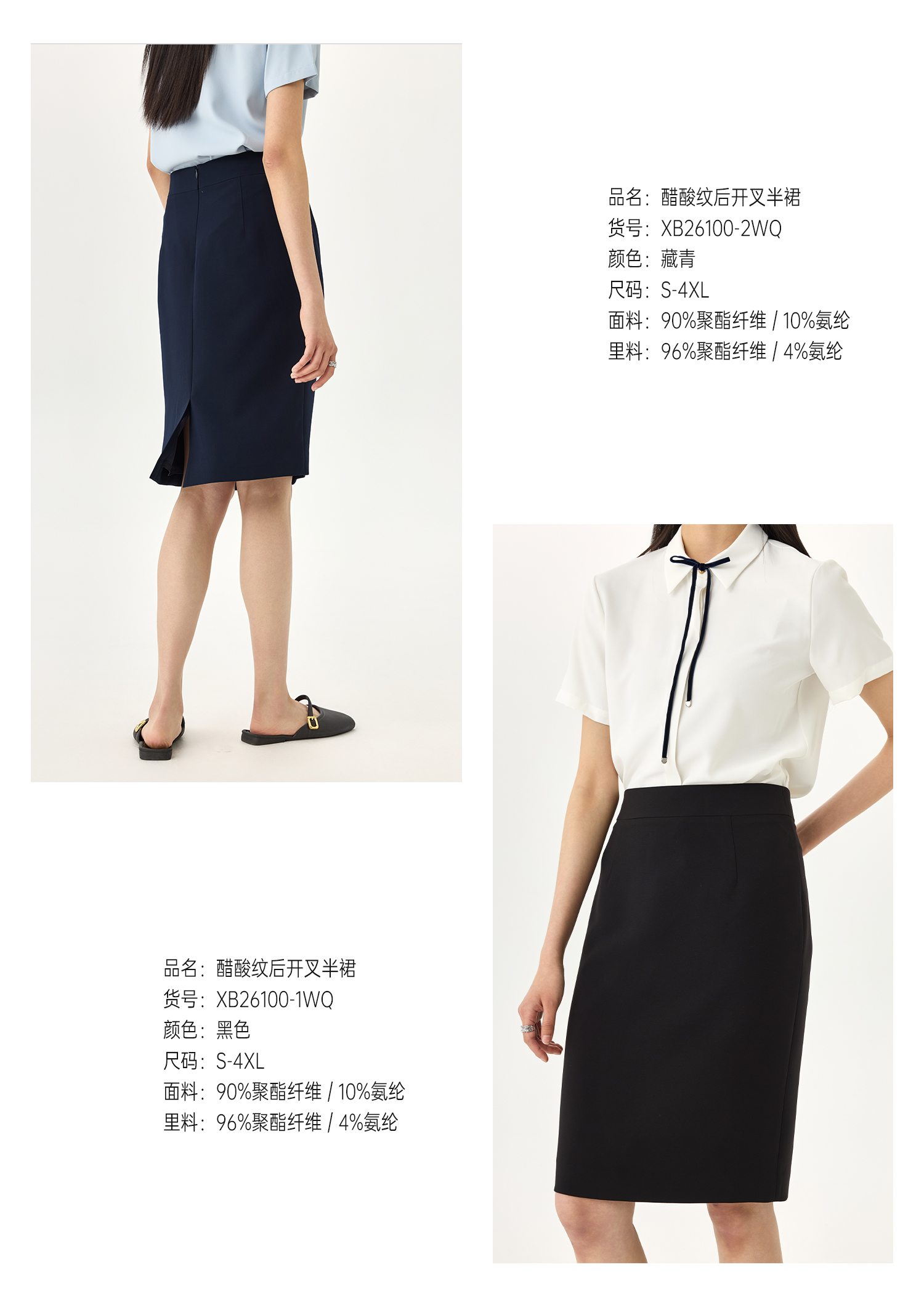 XB26100WQ 醋酸纹后开叉半裙