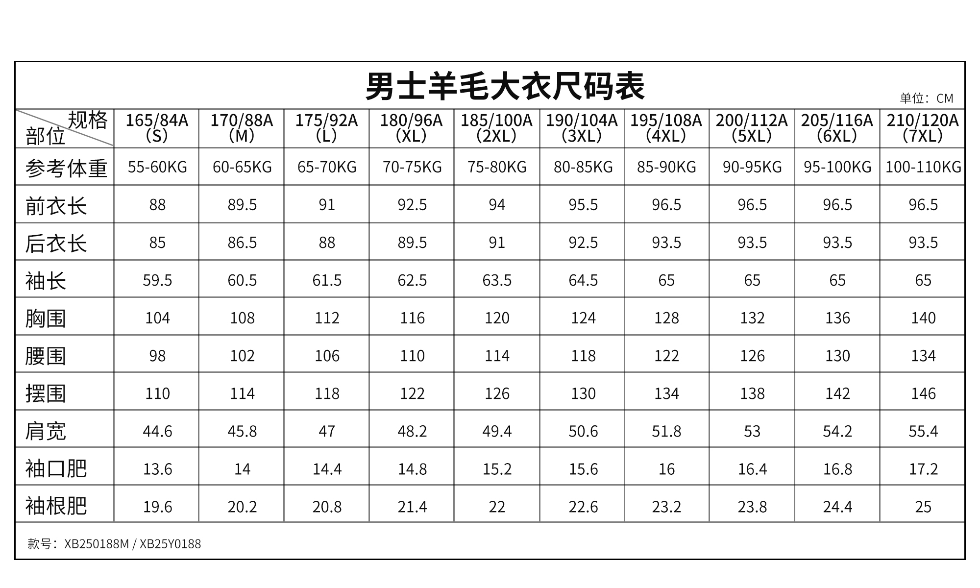 尺码 S-7XL