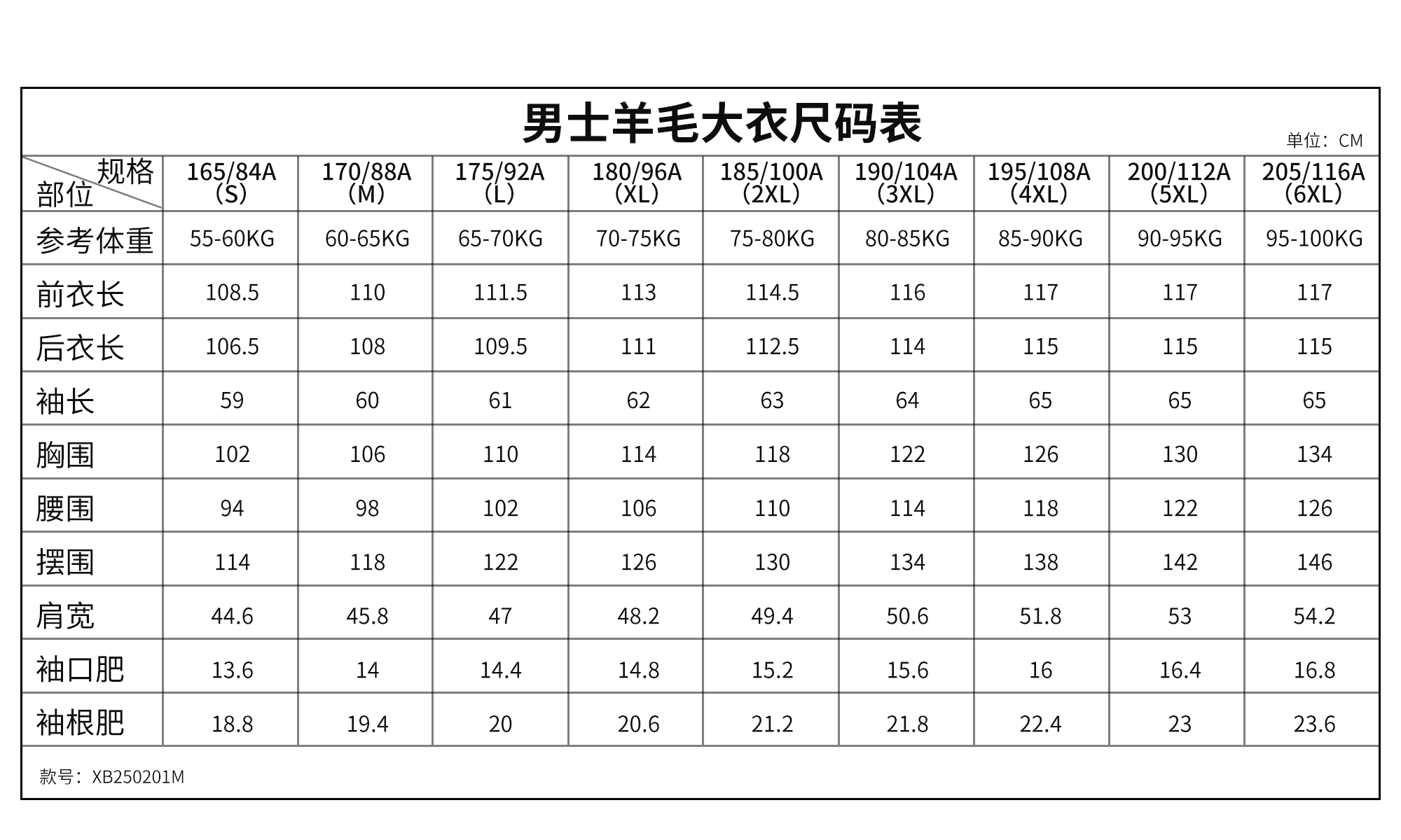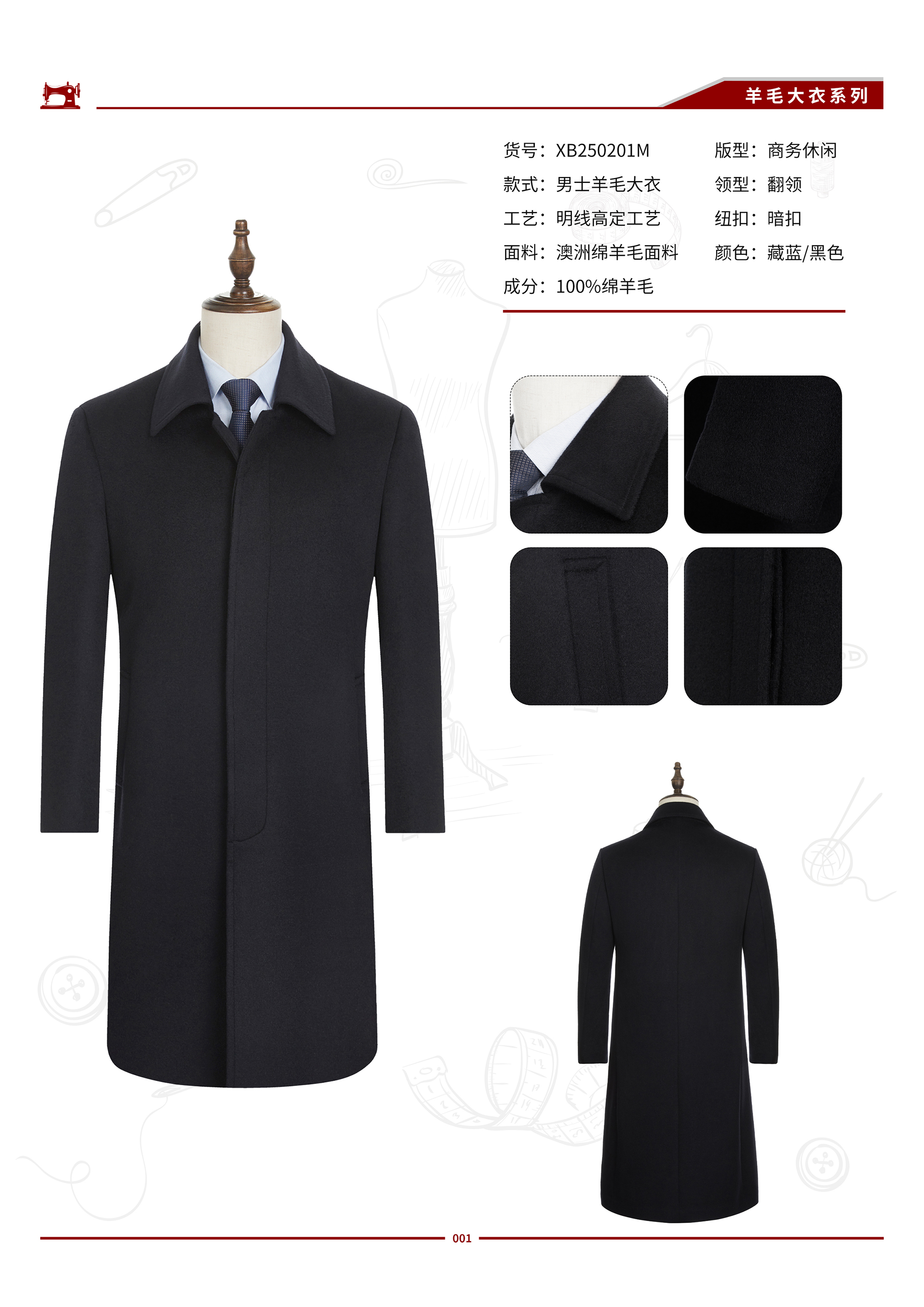 品名 XB250201M 男士100%羊毛暗扣大衣