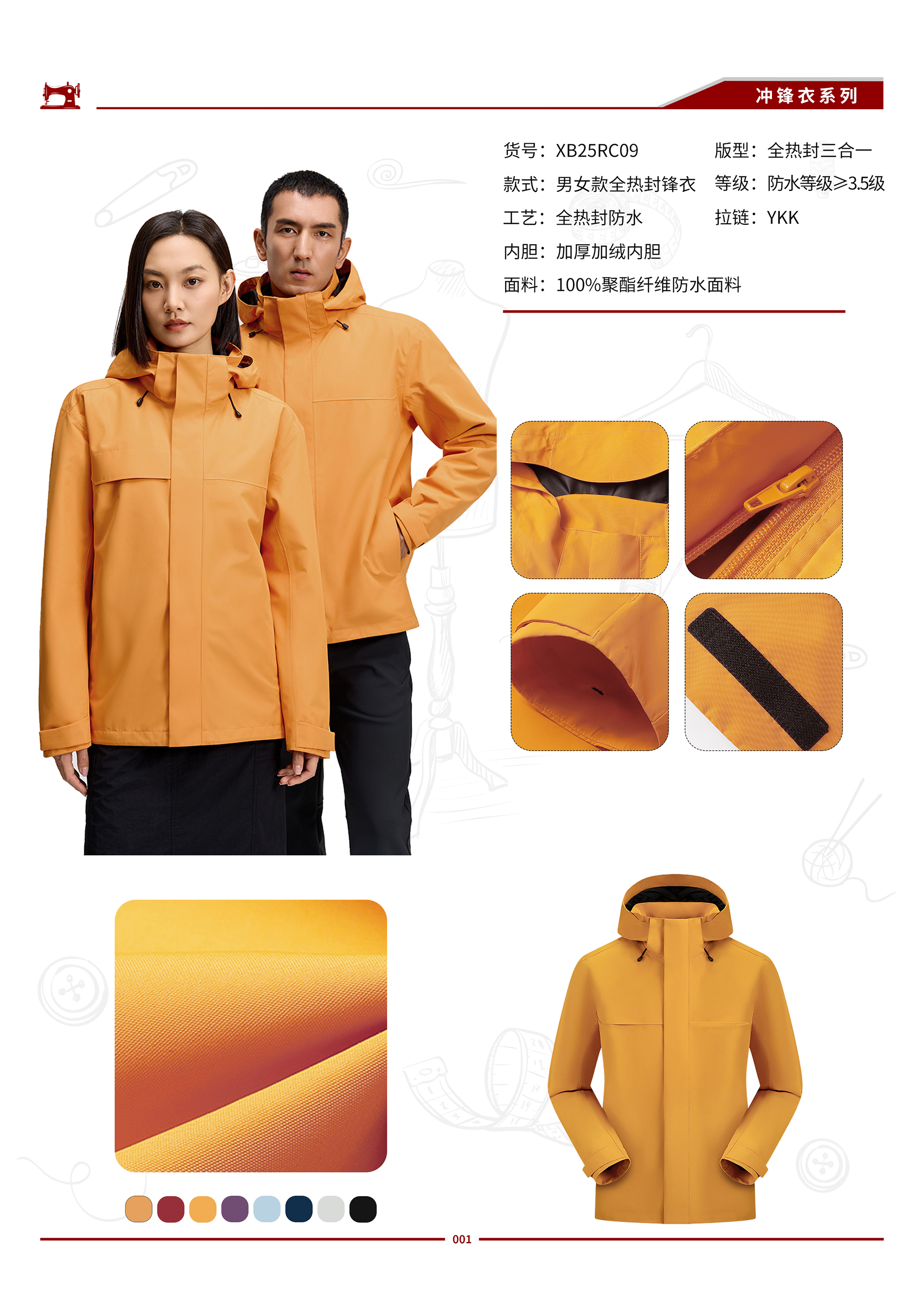 品名 XB25RC09 男女通款三合一抓绒冲锋衣