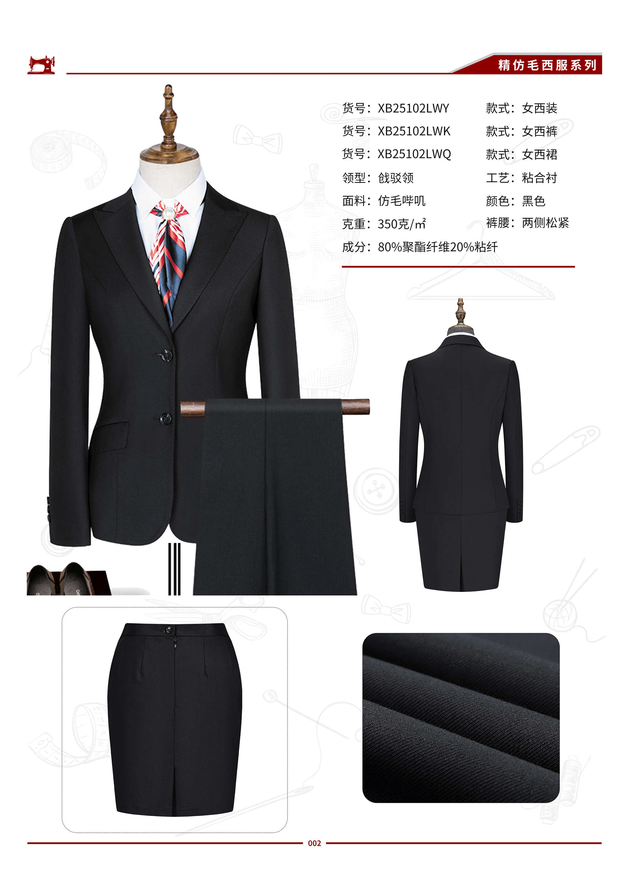 品名 XB25102LW 女士戗驳领黑色仿毛西服