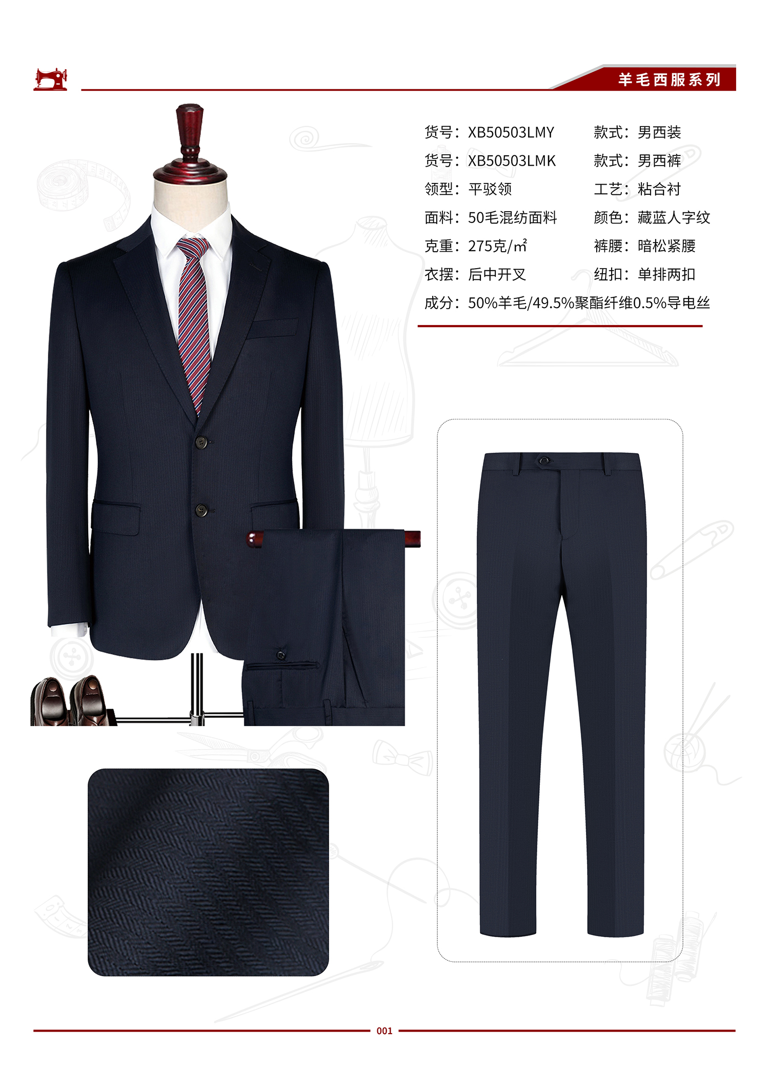 品名 XB50503LM 男士50%羊毛人字纹西服