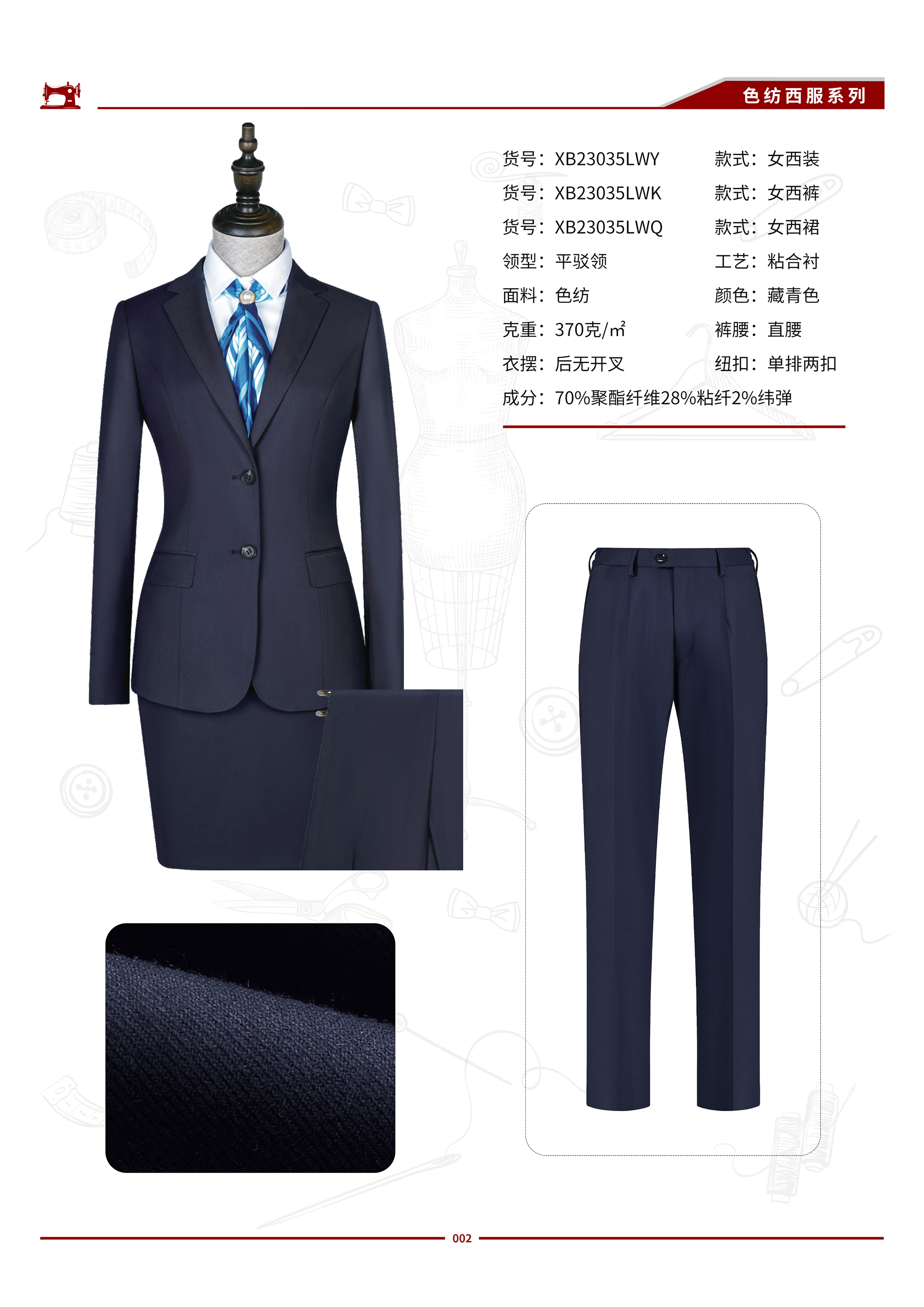品名 XB23035LW 女士色纺弹力面料西服