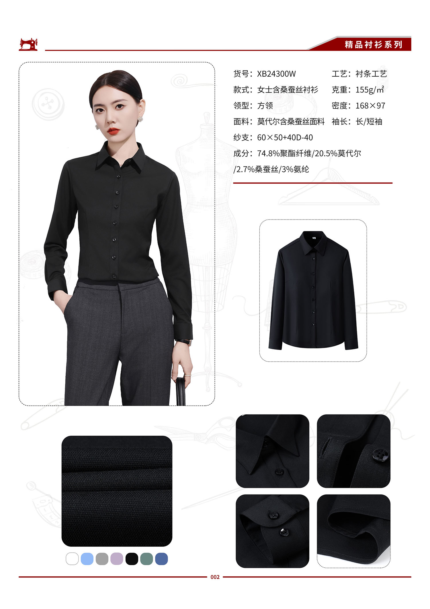 XB24300W 女士桑蚕丝抗菌亲肤衬衫